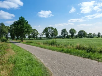 The approximately 52-kilometre route leads from the Ammerland park landscape into the East Frisian fen landscape. The stretches through Westerstederfeld and Ihorst offer the unique enjoyment of long, beautiful oak avenues and open wide views into the typical pasture landscape. At the Aper Tief and along the Südgeorgsfehn canal, the landscape opens up. Like pearls on a string, the farmhouses line up along the fen canals, and on the tour, you pass through sparsely populated green residential streets, moor meadows, peat cutter fields and canals. The canals were formerly used to transport the excavated peat. The beautifully arranged bathing lake in Großsander offers a nice spot for a break.